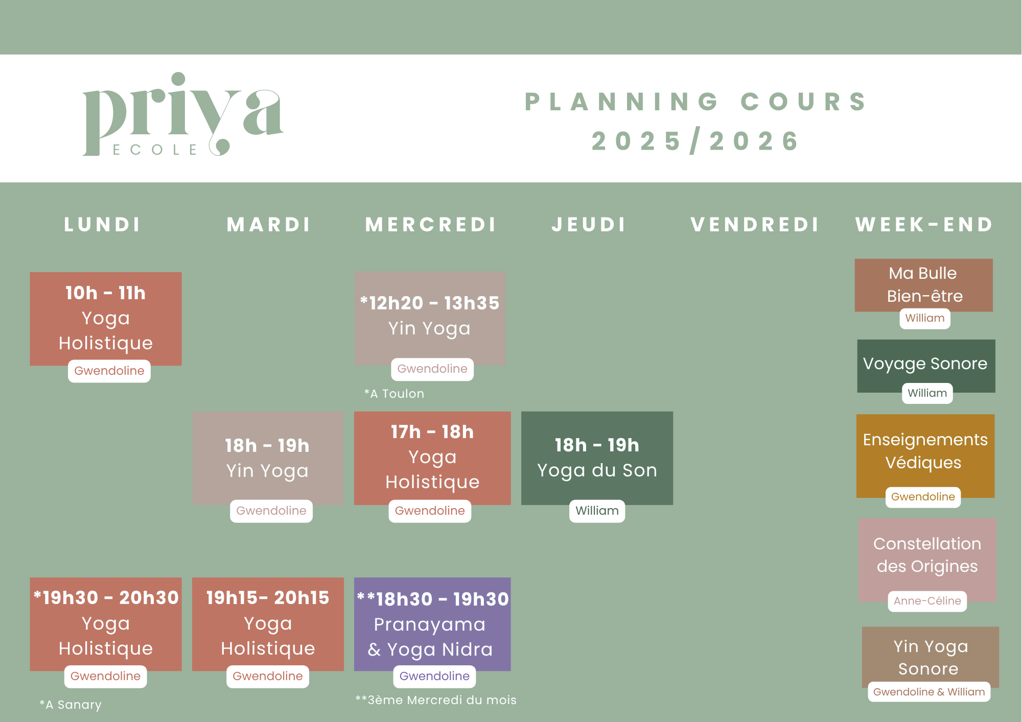 Fondée en 2012 par Gwendoline Le Breton professeure certifiée de plus RYT-500, l'École Priya offre des espaces dédiés à l’épanouissement personnel, au bien-être et à la santé globale.